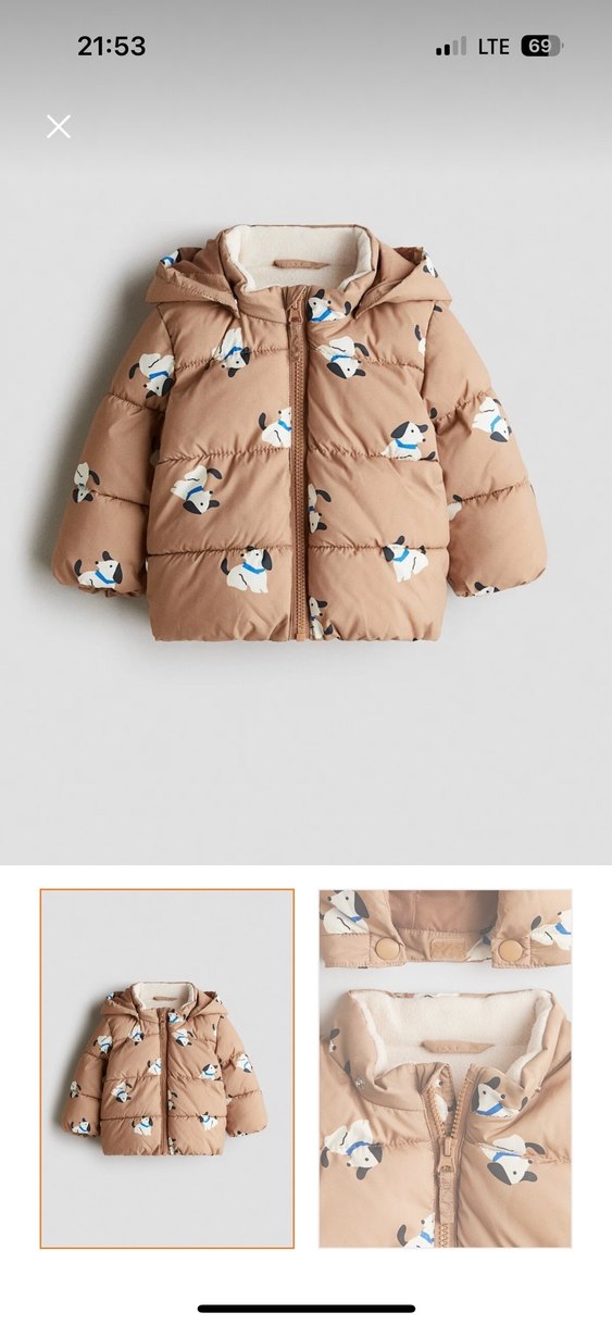 Kapüşonlu, kürklü ve baskılı desenli bej renkli kız çocuk montu, rahat ve şık bir sokak stili sunar.
