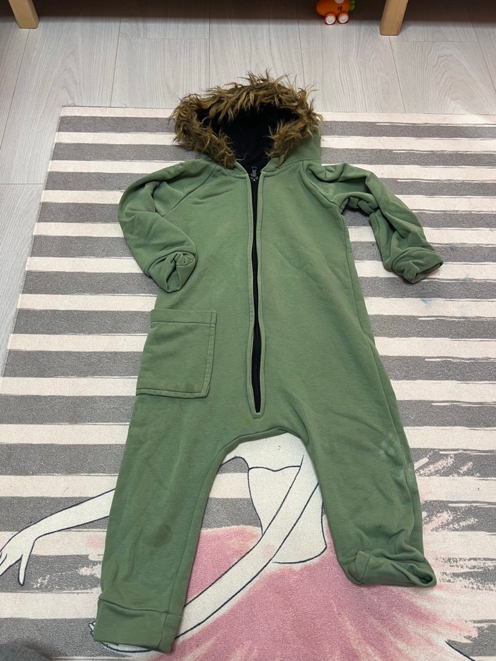 Halki yeşil sokak tarzı erkek bebek tulumu, yumuşak ve sıcak kumaş ile kapüşonunda kürk detayına sahiptir. Ön fermuar ve kullanışlı cep bulunmaktadır. ❄️ kız çocuğu için de uygun