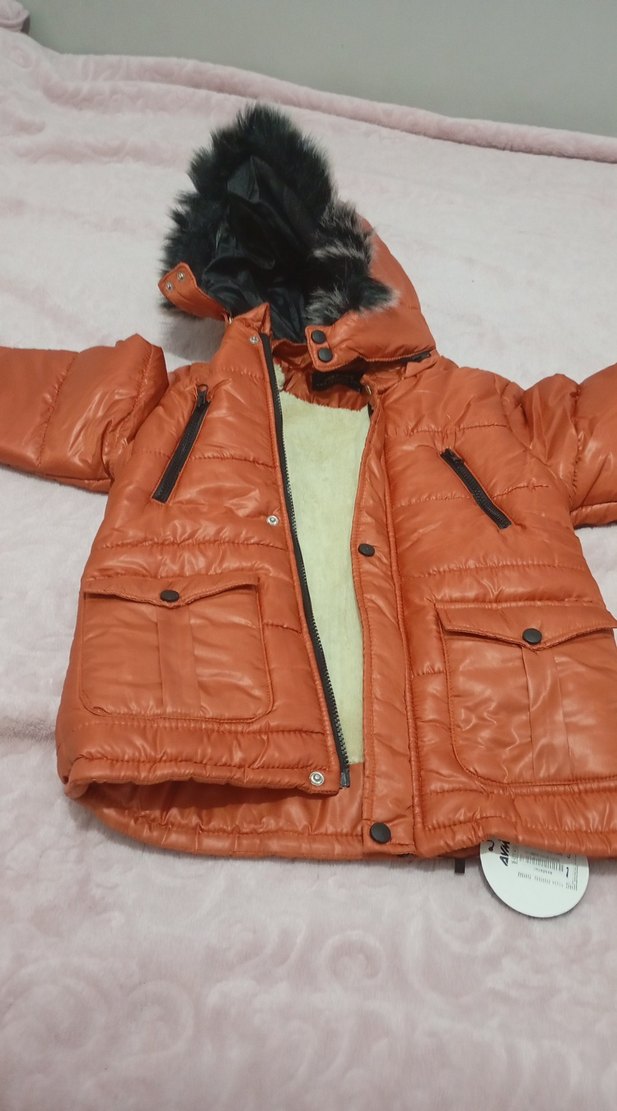 Parlak kahverengi dış yüzeyli, kürklü kapüşon ve yumuşak fleece astarlı, oturan kesim erkek çocuk mont. Fermuarlı ve düğmeli cepleriyle sokak stili için uygun. 7.8 yaş yazıyor ama ben 4.5 yaşından itibaren olacağını dusunuyorum