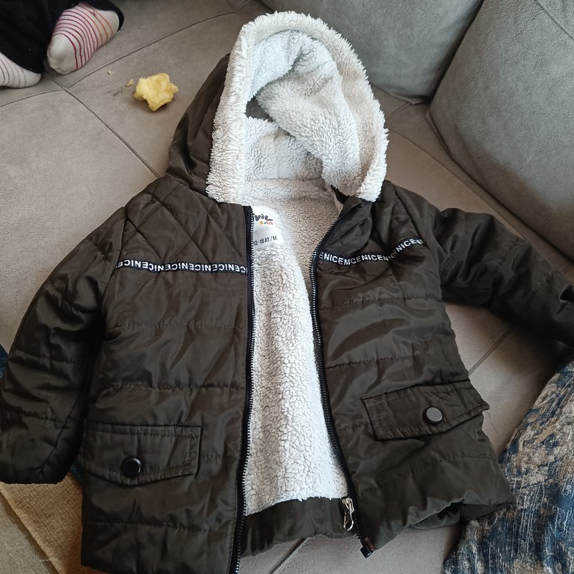 Kahverengi dış yüzeyi ve gri kürklü iç astarıyla, notched lapel yakalı, fitted kesim erkek çocuk montu. Düğmeli cepler ve fermuarlı kapanış içerir. yırtığı söküğü yoktur sarı mont da aynı şekildedir ikili fiyatıdır