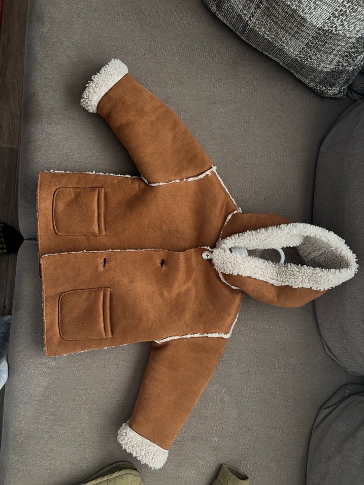Kürklü Kapüşonlu Erkek Çocuk Süet Kaban