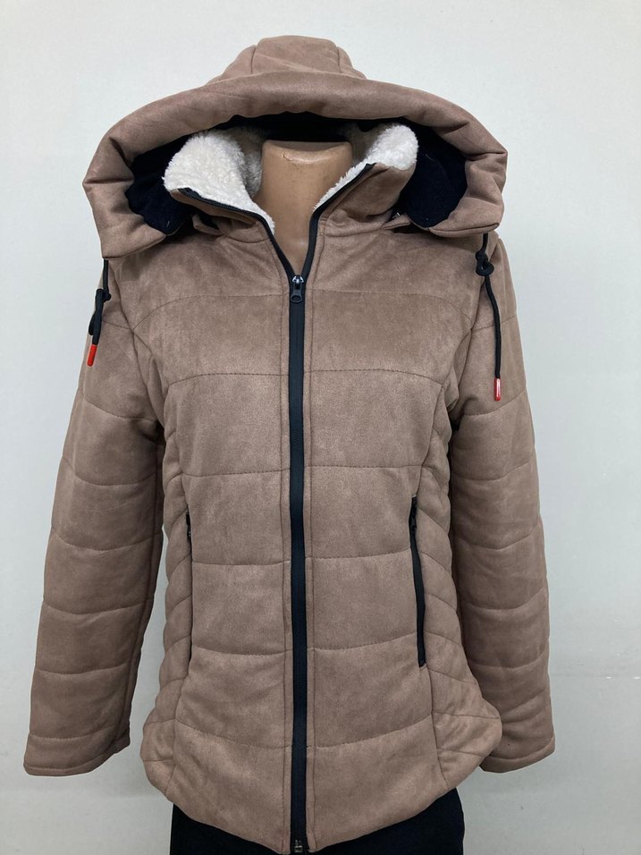 Kadın kışlık mont, kısa boy ve regular fit. Yumuşak, sıcak kumaştan, kürklü detaylıdır. Notched lapel yakalı, ayarlanabilir kapüşonlu, kahverengi ve desensizdir. Gençler için günlük kullanıma uygun.
