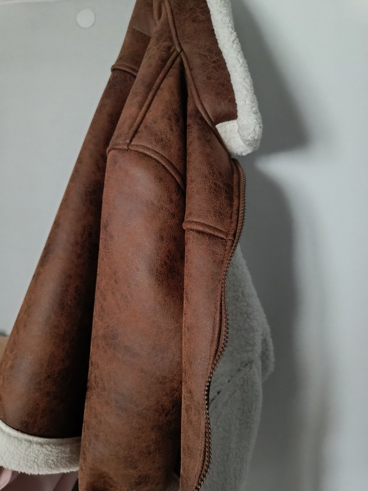 Kahverengi süet ceket, fermuarlı ön detaylara sahiptir. Kısa ve vücuda oturan kesimi ile rahat ve sıcak bir yapıya sahiptir. gerçekten çok sıcak tutar