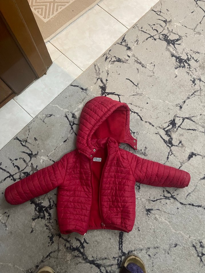 Kürklü kapüşonu ve yumuşak, sıcak kumaşıyla fitted kesim kırmızı erkek çocuk mont, streetwear tarzına uygun.