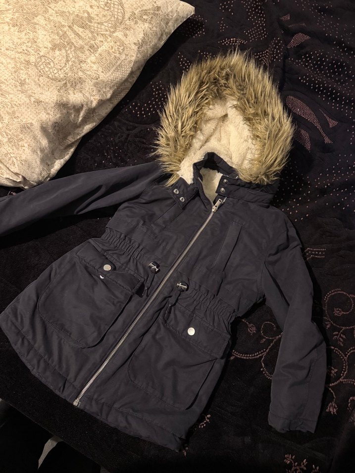 Kız çocukları için tasarlanmış, kürklü kapüşon ve kesik yaka detayına sahip, yumuşak ve sıcak tutan kumaştan yapılmış dar kesim kaban. Rengi füme siyah gibidir bir kusuru yoktur