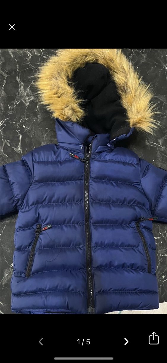 Kürklü Kapüşonlu Mavi Erkek Çocuk Mont