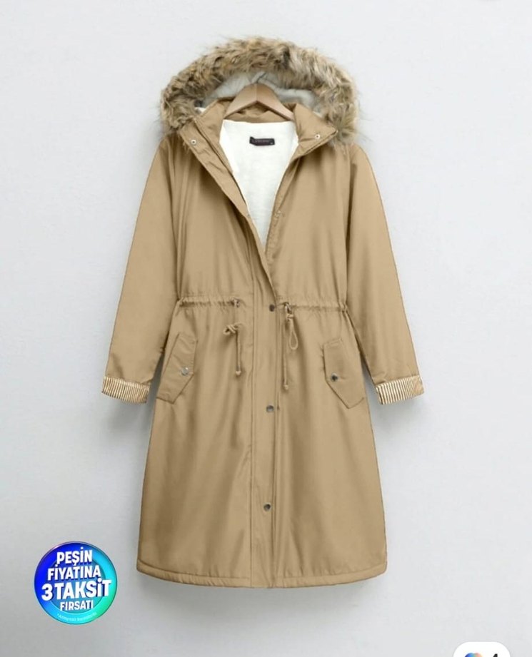 46 beden içi peluşlu mont. Bir kez giyildi. Rengi açık kahvemsi. Çok sıcak tutuyor