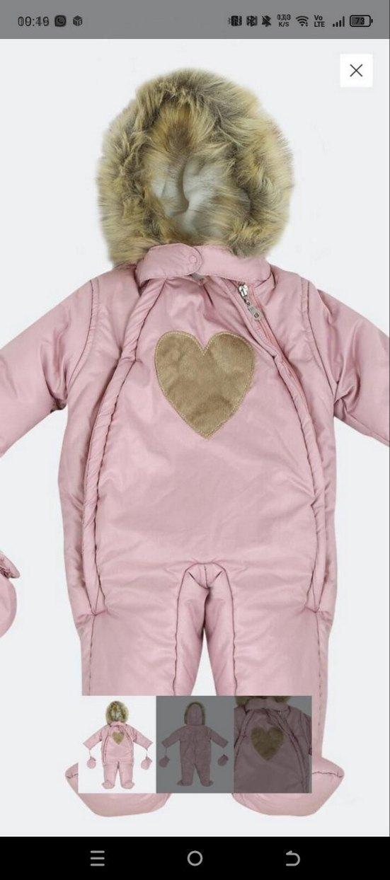 Pastel pembe renkte, kürklü kapüşon ve kesik yaka detayı bulunan bebek tulumu. Önünde kalp desenli, yumuşak ve sıcak kumaştan üretilmiştir. ❄️6-9 ay 74 cm bebekler için uygundur ürün kullanılmamıştır