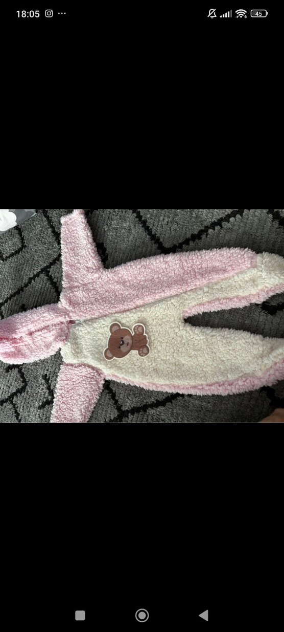 Kürklü detaylı, kapüşonlu pembe bebek tulumu, işlemeli desenlere sahip, yumuşak ve sıcak tutar. marka temsili