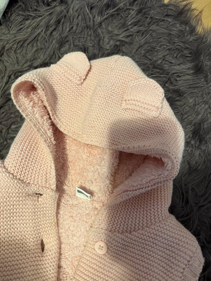 Pembe renkli, kürklü kapüşonlu yumuşak dokulu bebek tulumu, iç kısmı sıcak tutan rahat bir astara sahiptir. 2 li