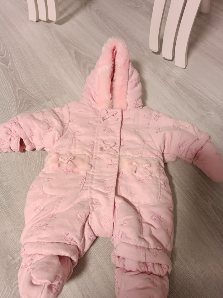 Pastel pembe renkte, kürklü kapüşonlu ve yumuşak, sıcak kumaşlı bebek tulumu. Desensiz ve rahat kullanıma uygundur. ❄️ dilerseniz patik ve eldivenleri çıkartabilirsiniz düğmeli çok şık sıcacık çok az kullanıldı 0-3 ay kız bebek tulum