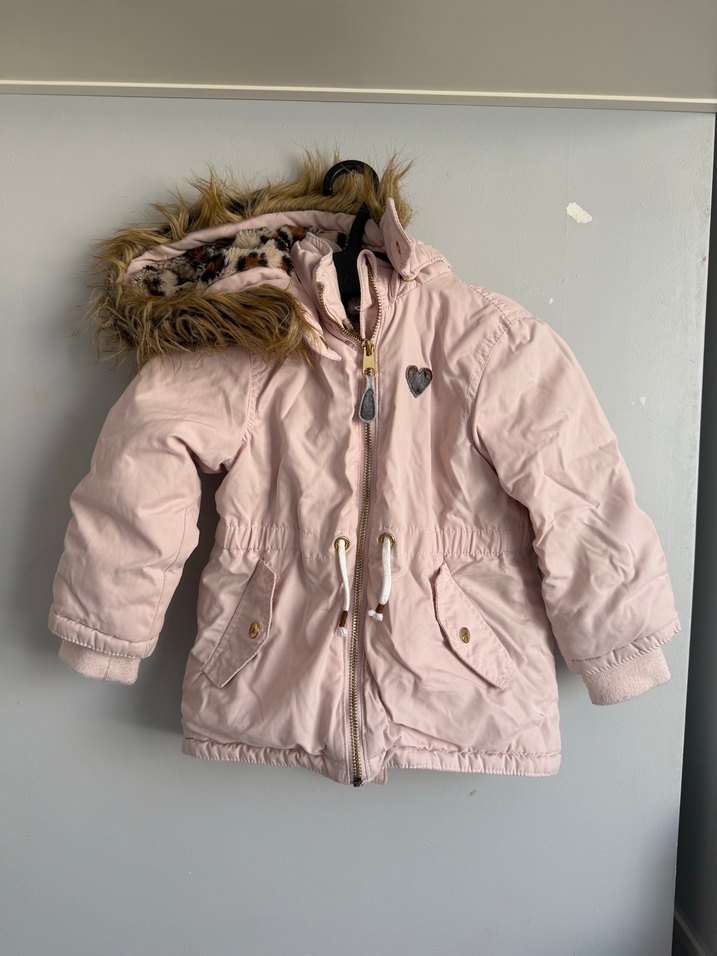 Yumuşak kumaştan yapılmış, kapüşonunda kürk detaylı pembe, fitted kesim kız çocuk mont. Notch yaka ve sokak stiline uygun tasarım içerir. ❄️