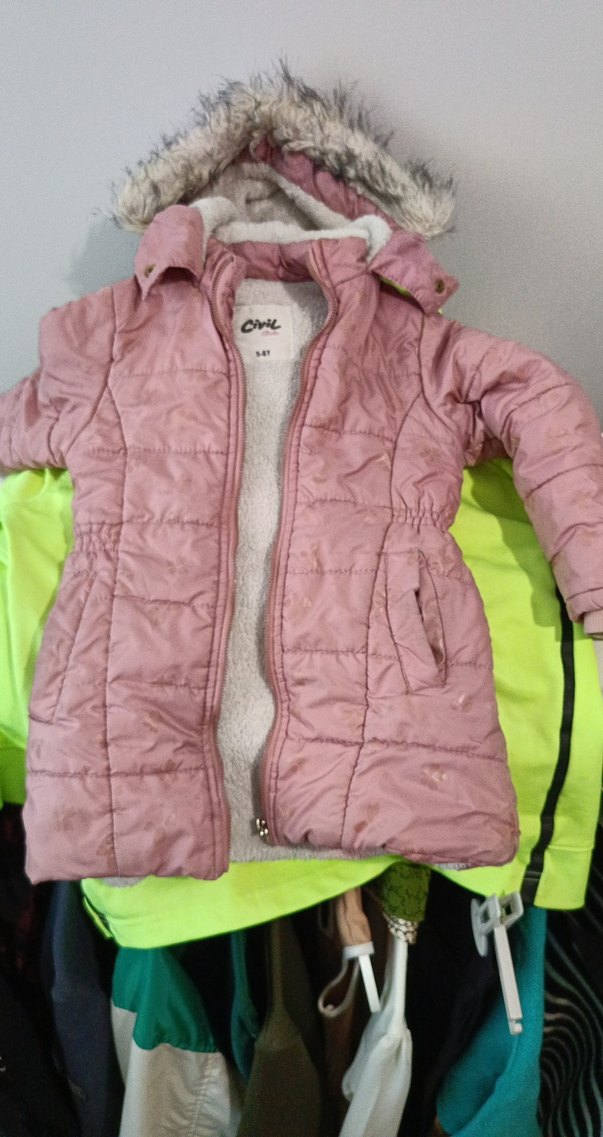 Fitted kesim, kürklü detaylı ve notched lapel yakalı pembe kız mont, yumuşak ve sıcak kumaştan üretilmiştir.