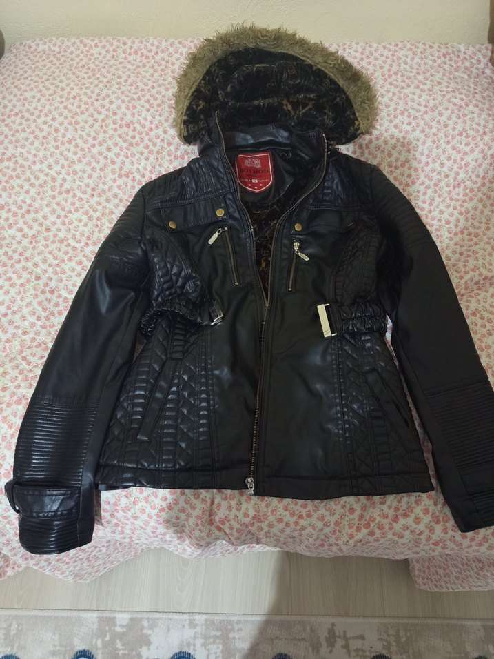 Kürklü kapüşonlu, askılı kollu, siyah deri biker ceket, günlük sokak stili için uygun, dar kesim. piyasanın çok altında satıyorum. çok sıcak tutuyor.