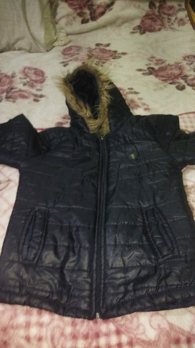 Kürklü kapüşonlu, uzun kollu, siyah kadın kışlık mont. Sentetik kumaştan, midi boyda, sade ve günlük kullanıma uygun.