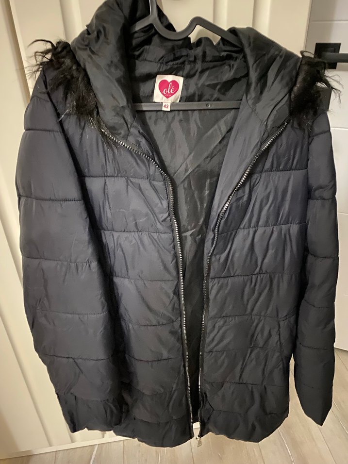 Bu siyah kadın mont, kürklü kapüşon ve dar kesime sahiptir. Normal uzunlukta ve uzun kolludur, yumuşak ve sıcak kumaştan üretilmiştir.