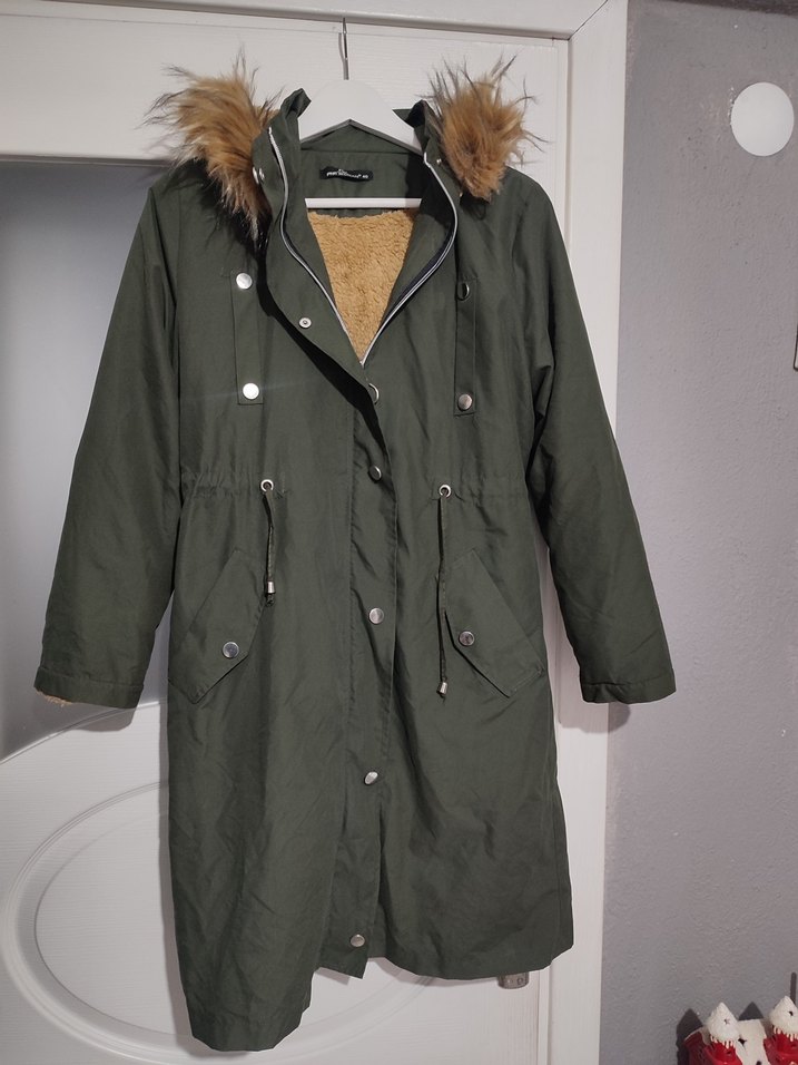 Kürklü Kapüşonlu Uzun Kadın Mont