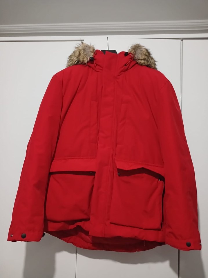 Kürklü Kırmızı  erkek  Kışlık Mont - Görsel 1