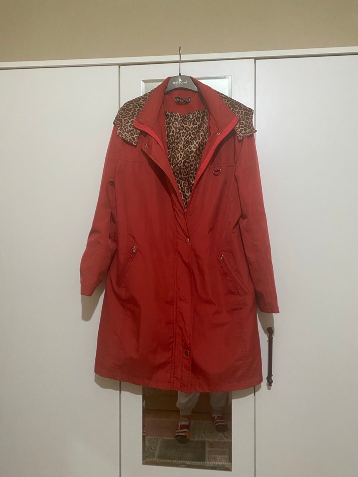 Kürklü yaka detaylı kırmızı, bol kesim hamile midi mont. Uzun kollu ve yumuşak sentetik kumaştan, günlük kullanıma uygun rahat bir sokak stili parçası.