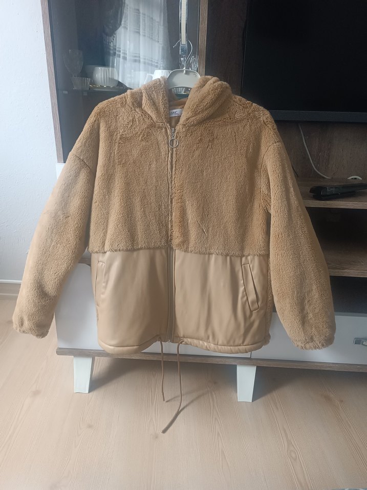 Yumuşak ve sıcak kumaşlı, kürklü detaylı bej kadın mont peluş mont 3-4 defa giyinmiştir hiçbir deformesi yoktur resimlerinde fark edebilirsin uzunluğu 68 cm'dir koltuk altından diğer koltuk altına genişliği 50 cm'dir günlük rahat kullanıma uygun.