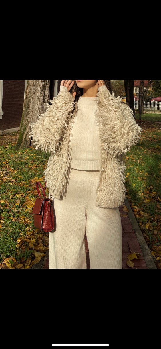 Kürklü Kısa Oversize Bej Hırka