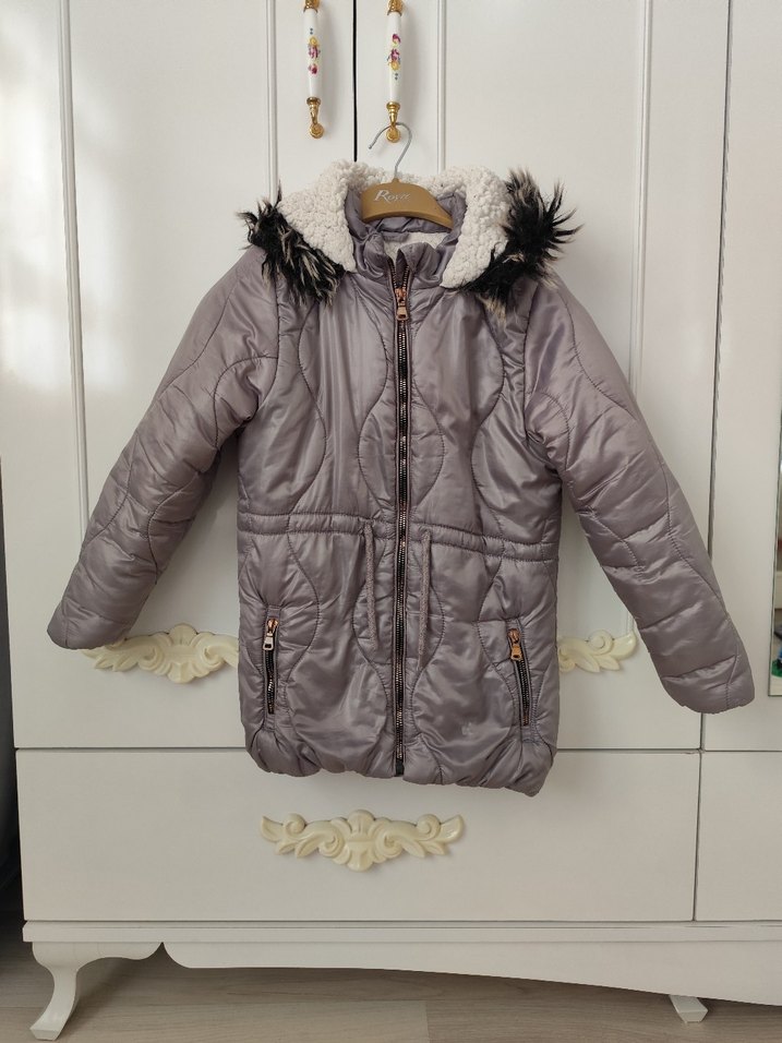 Kürklü detaylı, lila renkli, fitted kesim kız çocuk montu. Notched lapel yakalı, yumuşak ve sıcak kumaştan üretilmiştir, fermuarlı cepleri ve kürklü kapüşonu vardır. marka temsilidir.