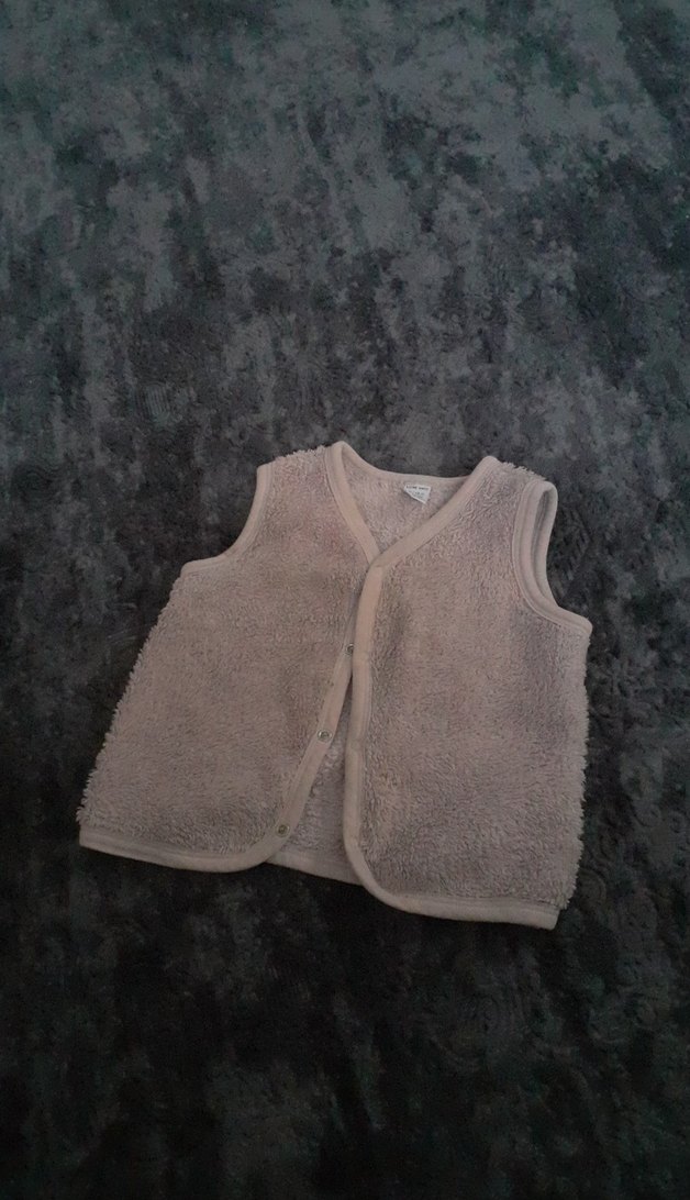 için kolsuz, yumuşak ve sıcak kumaşlı, kürklü detaylara sahip yelek. Dar kesim ve yuvarlak yaka ile sade tasarım.