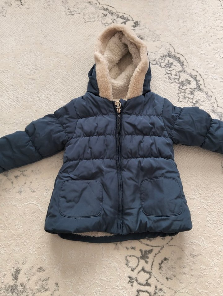 Koyu mavi renkte, fitted kesim erkek çocuk montu. Yumuşak ve sıcak kumaştan, kapüşonunda kürk detaylı, cepli ve fermuarlı.