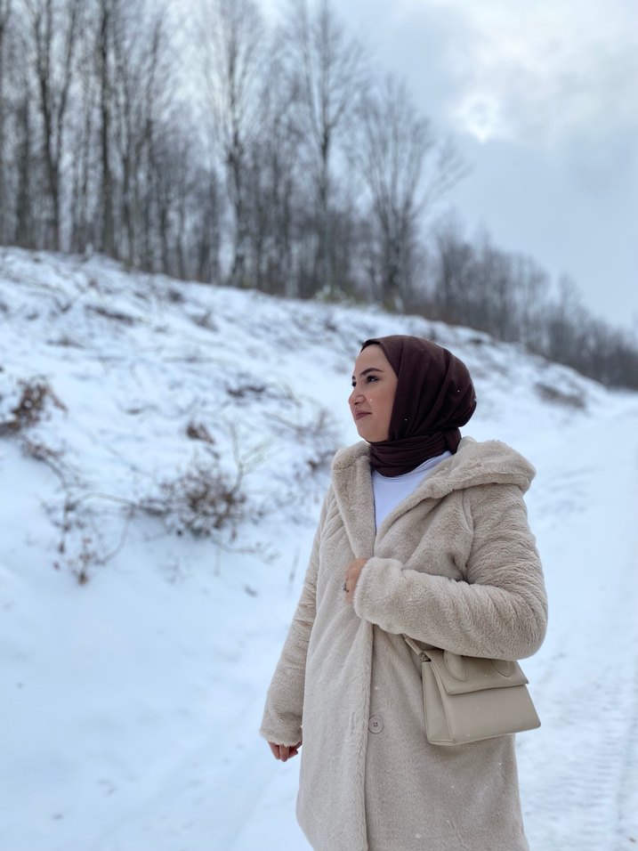 Krem midi kaban, yüksek yakalı ve Yumuşak, sıcak kumaştan yapılmış ve kürk detaylara sahiptir. Uzun kollu ve günlük kullanıma uygundur. ❄️ belli olmicam şekilde izmarit yanıgı mevcut