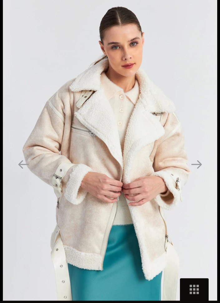 Kürklü Krem Rengi Kısa Kadın Ceket