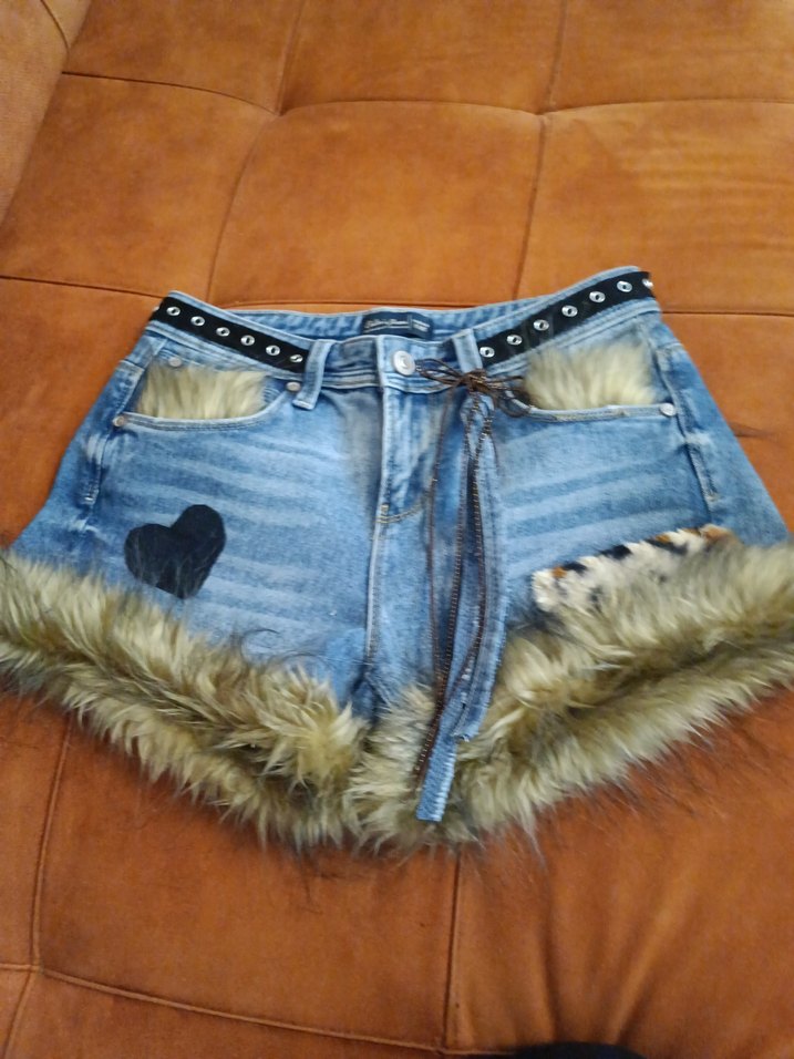 Vintage üründen tasarlanmıştır ölçüleri resimlerde mevcuttur lütfen inceleyerek alınız.Kürklü detaylara ve leopar desenine sahip kısa boy kadın denim şort, bol kesim ve sokak tarzıyla outdoor kullanıma uygun.