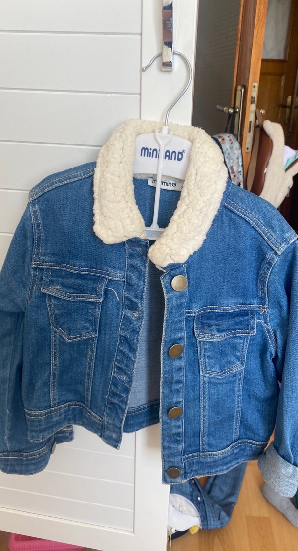 Dik yakalı, kürklü mavi denim ceket. Uzun kollu, fitted kesim ve parlak görünümle günlük kullanıma uygun sokak stili.