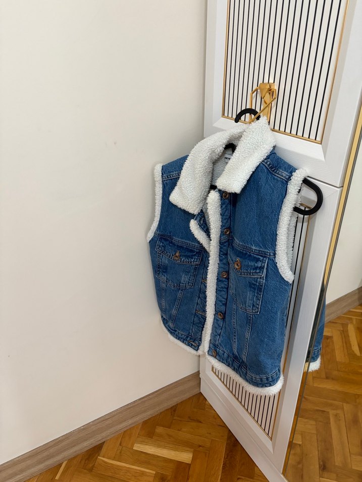 Kürklü Mavi Denim Yelek