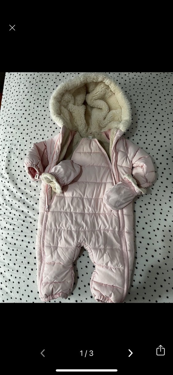 Pastel pembe bebek tulumu, kürk detaylı kapüşon ve eldivenlerle sıcaklık sağlar, kesimli yakası vardır. Dolaptan almıştım 3-4 kere anca kullanmıştır. Hiçbir lekesi yırtığı vs yoktur❄️