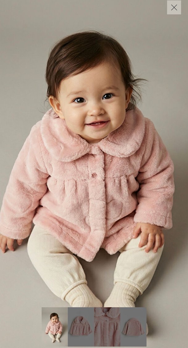 Pastel pembe renkte, kürklü detaylı ve yakalı bebek kışlık mont, soğuk havalar için sıcak tutar. ❄️