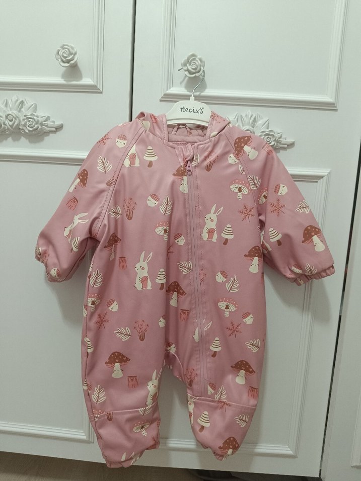 Pastel pembe renkli, tavşan ve mantar desenli bebek tulumu. Kürklü detaylara ve kesik yaka tasarımına sahiptir. ❄️. tertemiz sadece minik bir deforme var. kızım ilk dışı çıktığında ısırdı