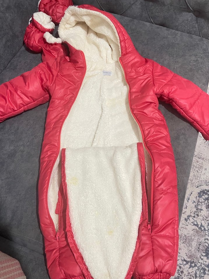 Pembe kız bebek kar tulumu, kürklü iç yüzeyi ve kesimli yaka detayı ile sıcaklık ve konfor sunar. Düz ve desensiz tasarıma sahiptir. ❄️