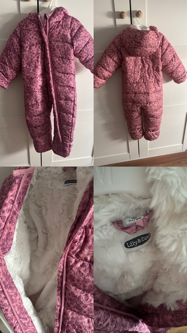 Koyu pembe kız bebek kayak tulumu, yumuşak kürk astar ve yaka detayına sahiptir, sıcaklık ve konfor sağlar. ❄️ 74/80 - 9-12 Yurtdışından alındı.