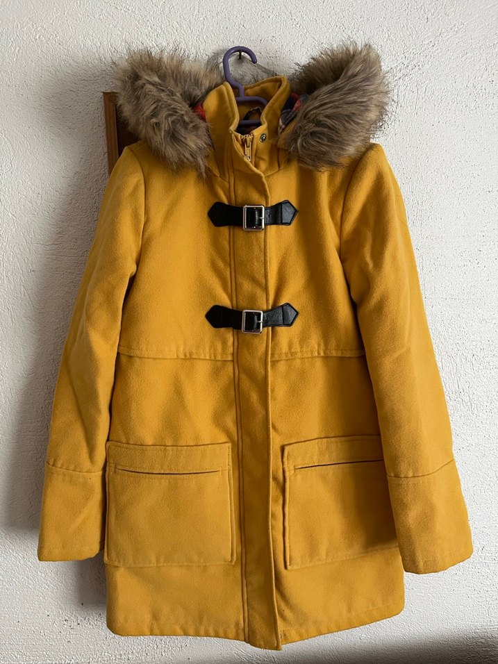 Kürklü Sarı Kışlık kaşe kaban