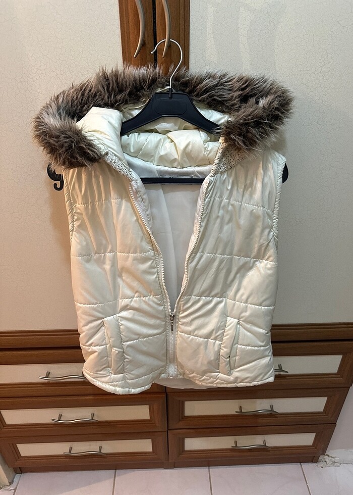 Yakası kürklü düğmeleri var çıkarıp kullanabilirsiniz sırtı gold iplik detaylı