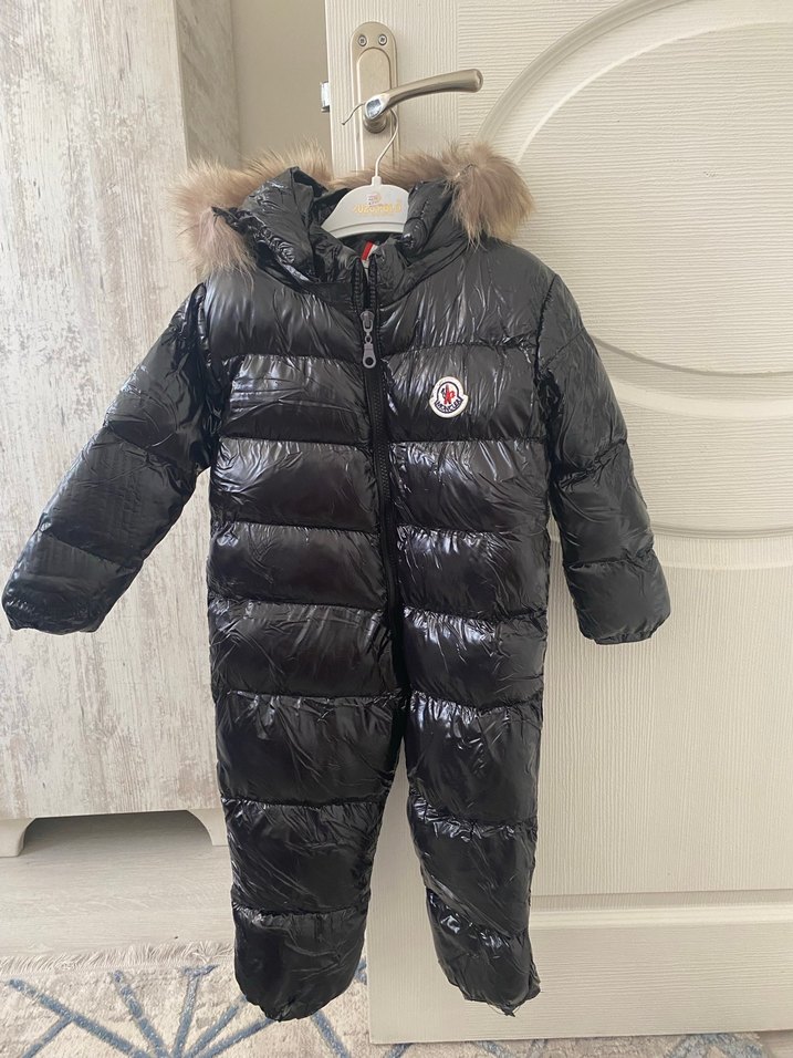 Kürklü detaylara sahip siyah bebek kayak tulumu, yumuşak polar astarlıdır ve sokak stiliyle tasarlanmıştır Moncler marka . ❄️