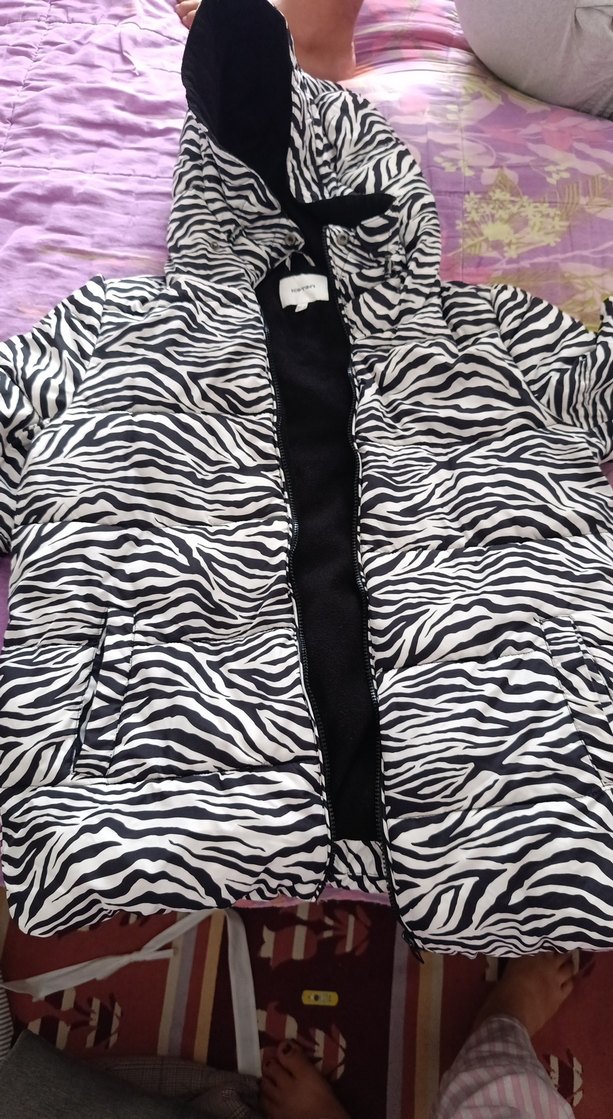 Kürklü Siyah Beyaz Zebra Desenli Kadın Mont