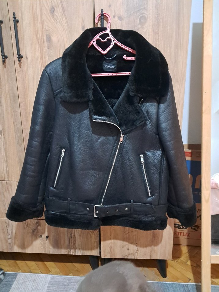 Kürklü yakası, deri malzemesi ve kemerli tasarımıyla siyah, fitted biker ceket. Midi boy, strappy kollu ve desen içermeyen günlük kullanıma uygun model. İçide tammamen kürklü gayet sıcak tutuyor sadece bir kaç kez giydim