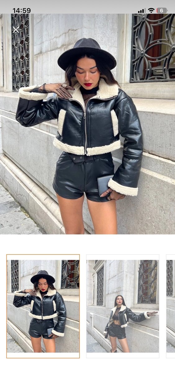 Kürklü Siyah Deri Crop Ceket