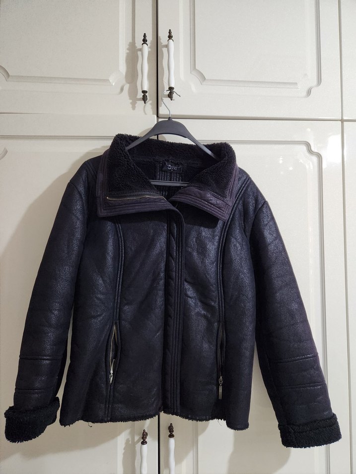 Kürklü detaylara sahip siyah, fitted deri biker ceket. Notch yaka ve fermuarlı cepler içerir. Midi boy ve askılı kolludur. Günlük kullanıma uygundur.