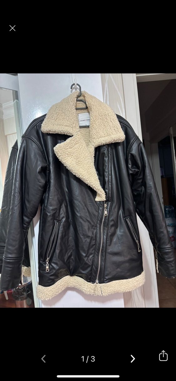 Siyah, uzun kollu, kürklü yakalı ve astarlı, fermuarlı cepli, deri kadın ceket. Günlük kullanıma uygun, rahat ve şık bir model.