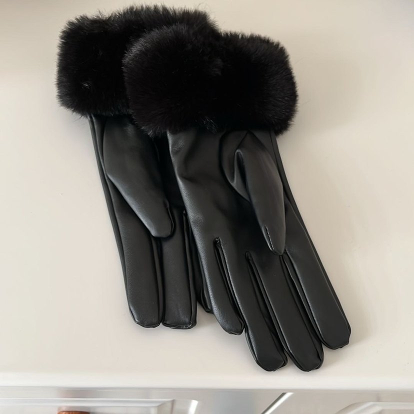 Siyah deri kadın eldivenler, kürk detaylı, rahat ve gotik tarzda, modaya uygun ve öncü tasarım sunar.