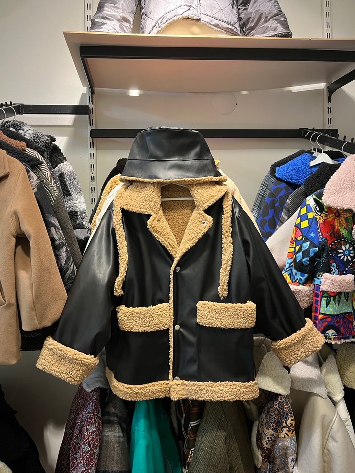 Siyah deri, kürklü detaylı, notalı yaka ve uzun kollu bol kesim kısa kadın ceket. Günlük kullanıma uygun rahat ve sokak tarzı.#çocukmont #siyahderimont #dericocukmontsapka