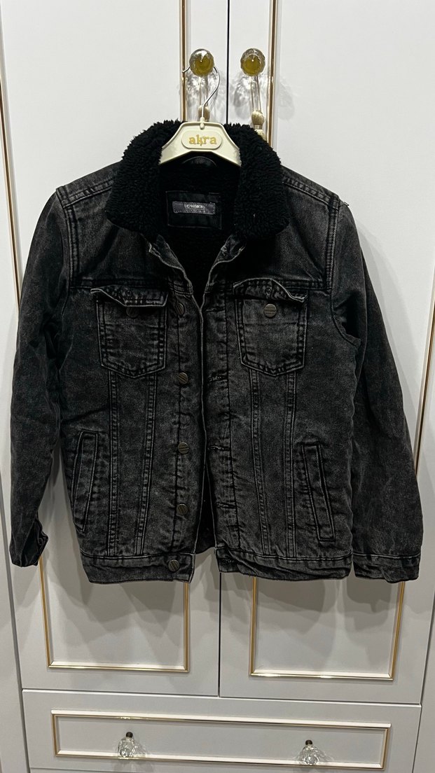 Kürklü Siyah erkek çocuk Denim Ceket