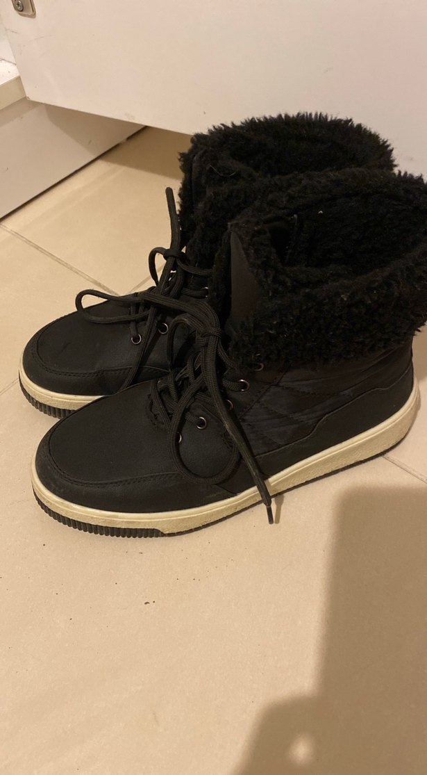 Kürklü detaylara sahip siyah dolgu topuk kadın botları, kauçuk tabanlıdır. Rahat ve günlük sokak stili için uygundur. ❄️
